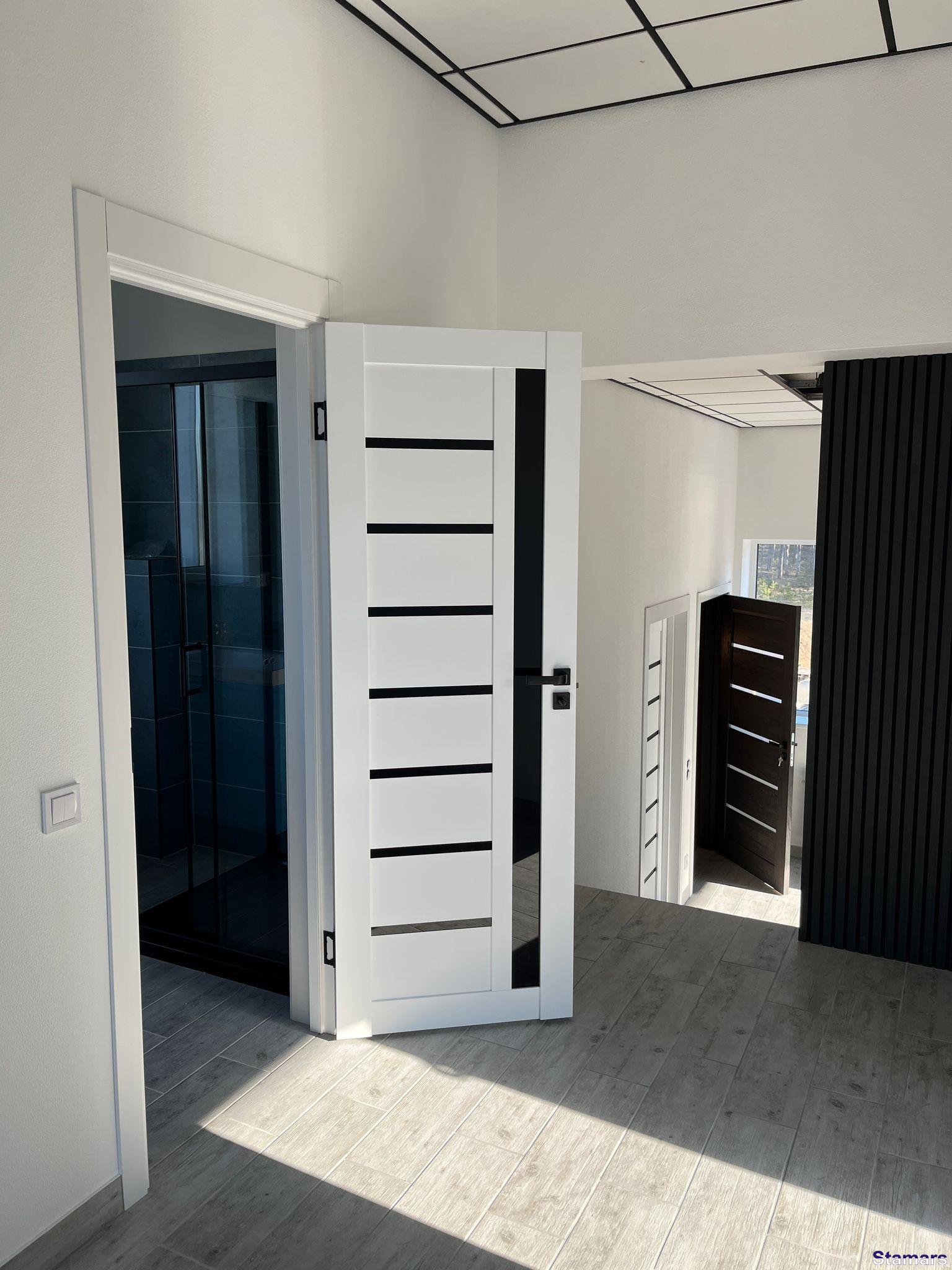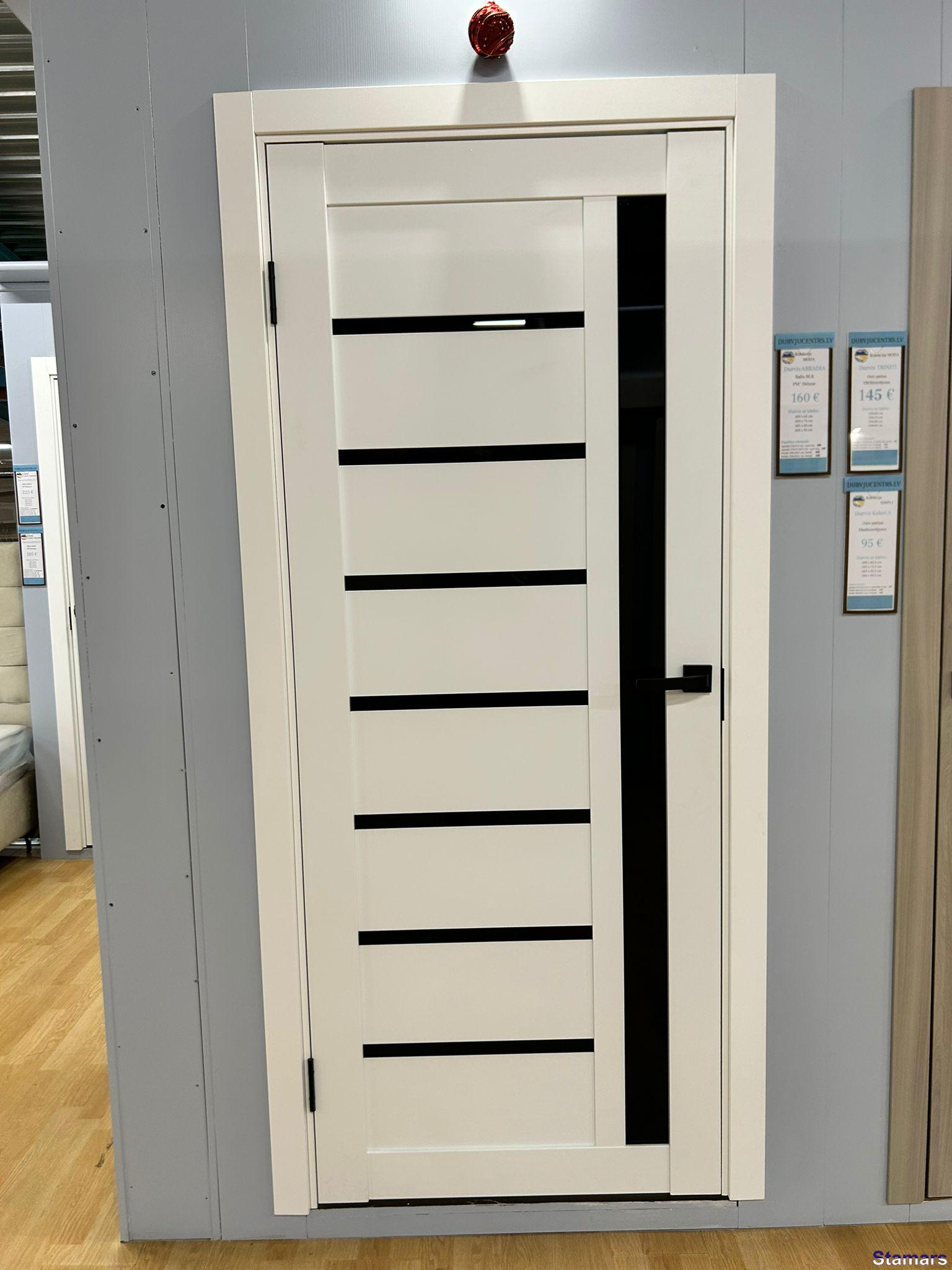 Arkadia baltas durvis ar melno stiklu ir ļoti moderns risinājums un kļūst par jaunāko interjera dizaina tendenci. Baltā krāsa rada tīrības un viegluma sajūtu, savukārt melnais stikls piešķir izteiksmīgu kontrastu un stila akcentu, padarot tās ideālas gan klasiskos, gan mūsdienīgos interjeros.