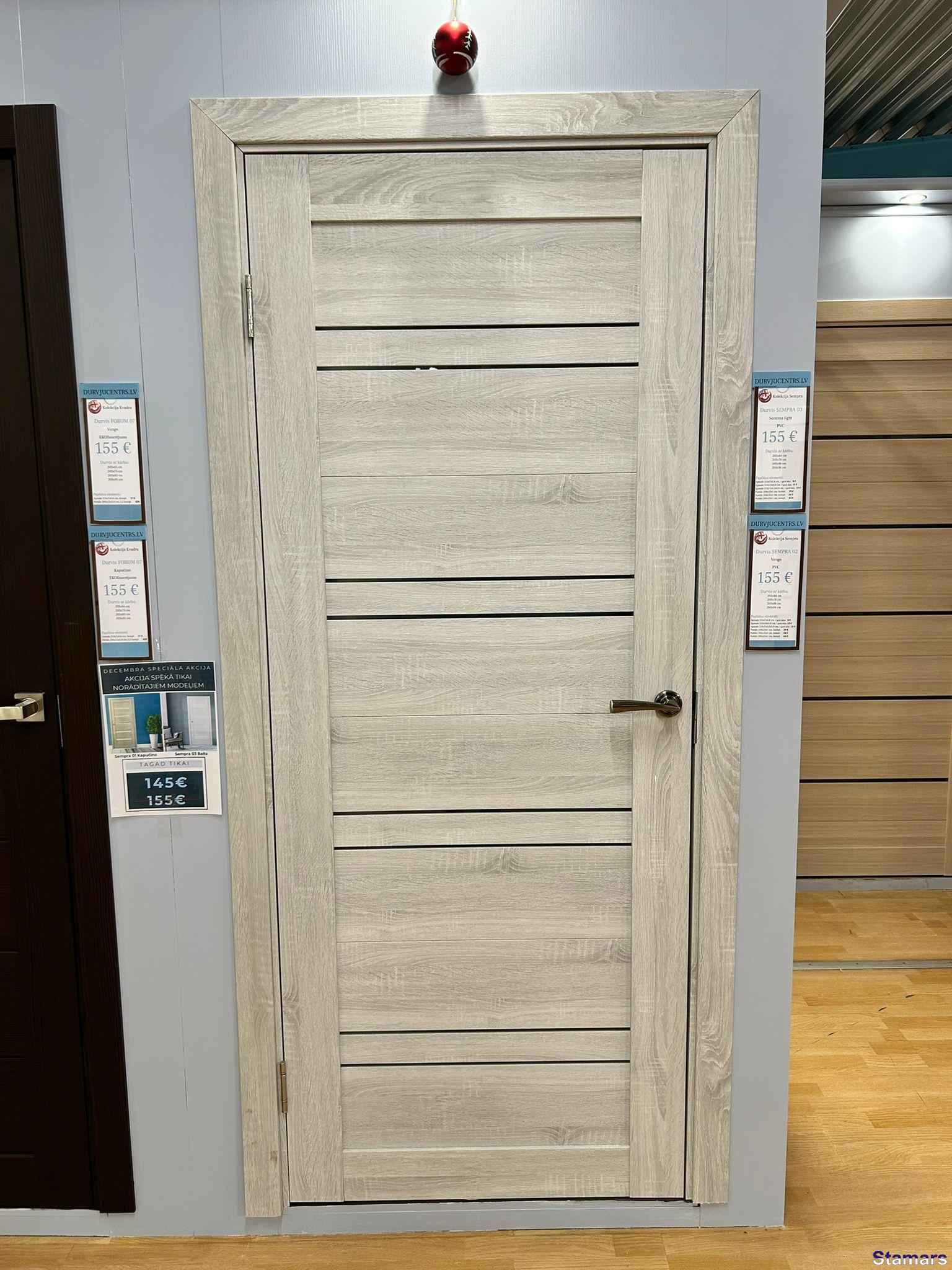 Standarta durvis bez pārfalces, vēršanās virziens – universāls.