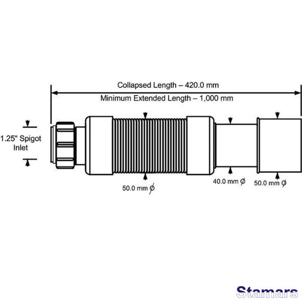 Akordeona montāžas savienotājs, 1000 mm garš, pieskrūvējams un taisns gals 1,1/4″x40/50 mm.