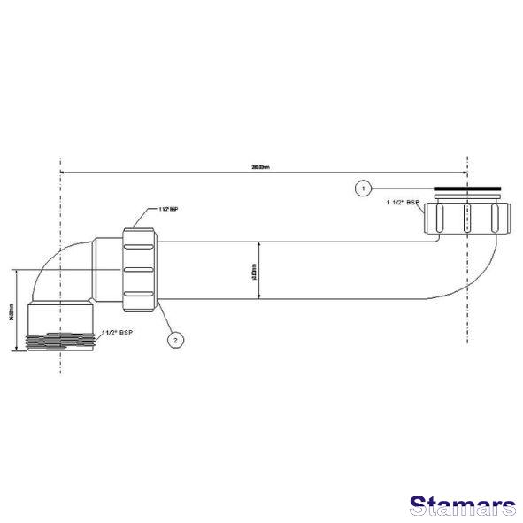Izlietnes sifona pagarinājums 1,1/2″1,1/2″, kas ļauj izmantot vietu zem izlietnes. Caurlaide – 53 l/min. pie 120 mm staba.
