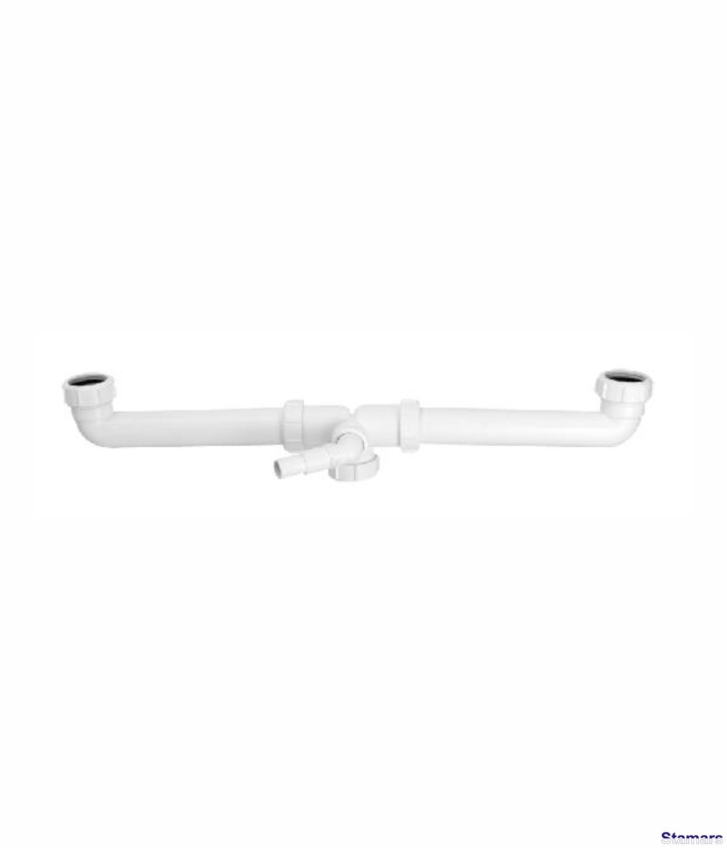 Savienojums divu trauku izlietņu komplektam 1,1/2″x1,1/2″ ar savienojumu ar veļas mašīnu vai trauku mazgājamo mašīnu.