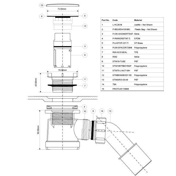 Dušas sifons ar elementu, kas ļauj tīrīt no augšas Sifona augstums 90mm. Vāks, diametrs 70mm, izgatavots no nerūsējošā tērauda Paredzētais pielietojums - dušas paliktnei ar 50mm atveri. Caurlaide – 50 l/min. ar ūdens stabu 120 mm.