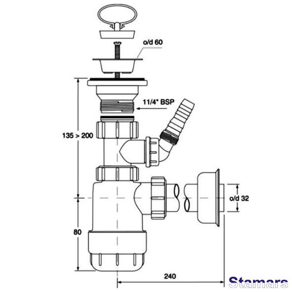 “Zems” pudeļu izlietnes sifons, 1,1/4″x32mm, ar nerūsējošā tērauda sietu, gumijas aizbāzni un savienojumu ar veļas mašīnu vai trauku mazgājamo mašīnu. Plūsmas ātrums 34 l/min. ar ūdens stabu 120 mm.