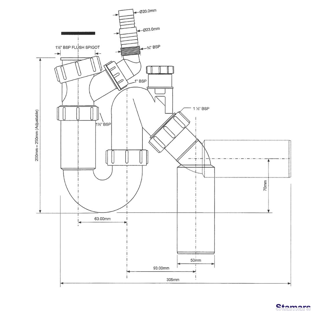 Sifons TP31VW50 ir universāls un funkcionāls virtuves instalācijas elements, kas paredzēts efektīvai ūdens novadīšanai no izlietnes. Tā izmērs ir 1,1/2″x50 mm, un tam ir papildu savienojums ar veļas mašīnu vai trauku mazgājamo mašīnu, kā arī iebūvēts gaisa padeves vārsts, kas novērš burbuļošanu un paātrina ūdens novadīšanu. Ar augstu caurlaidspēju – 60 l/min pie 120 mm ūdens staba, tas nodrošina uzticamu darbību virtuvēs ar lielu darba intensitāti.
