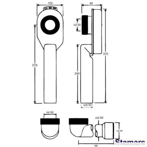 Slēptais pisuāra sifons 50x50mm ar vertikālu izvadu. Caurlaidība – 70 l/min pie 120 mm ūdens staba.