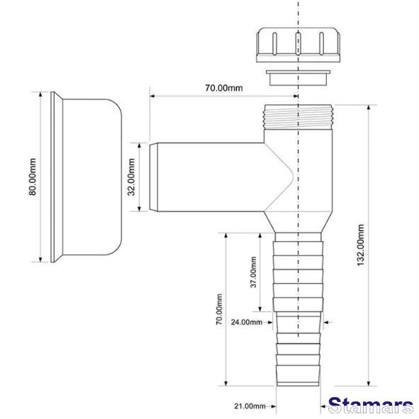 Savienojums ar veļas mašīnu vai trauku mazgājamo mašīnu ar vārstu. 32 mm izvads.