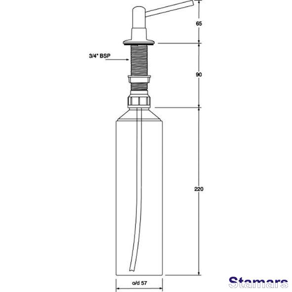 Šķidruma dozators, uzstādīts darba virsmā, izlietnē vai izlietnē. Dozēšanas elements izgatavots no misiņa. Krāsa - hroms.