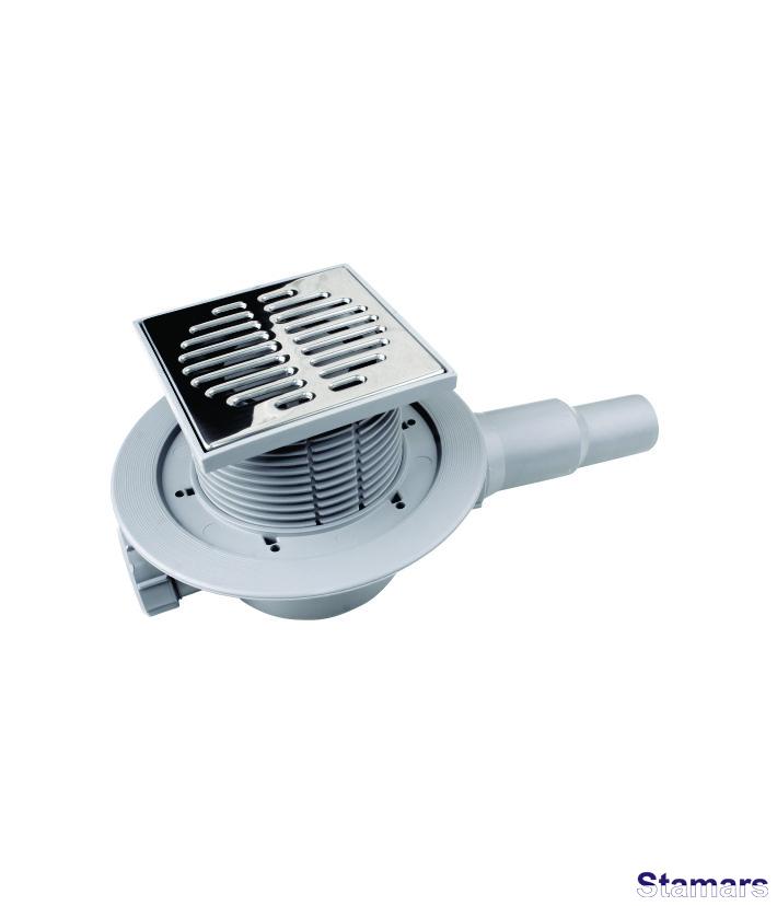 Grīdas noteka ar kvadrātveida režģi 115x115mm no nerūsējošā tērauda. Tas ir aprīkots ar pretvārstu.