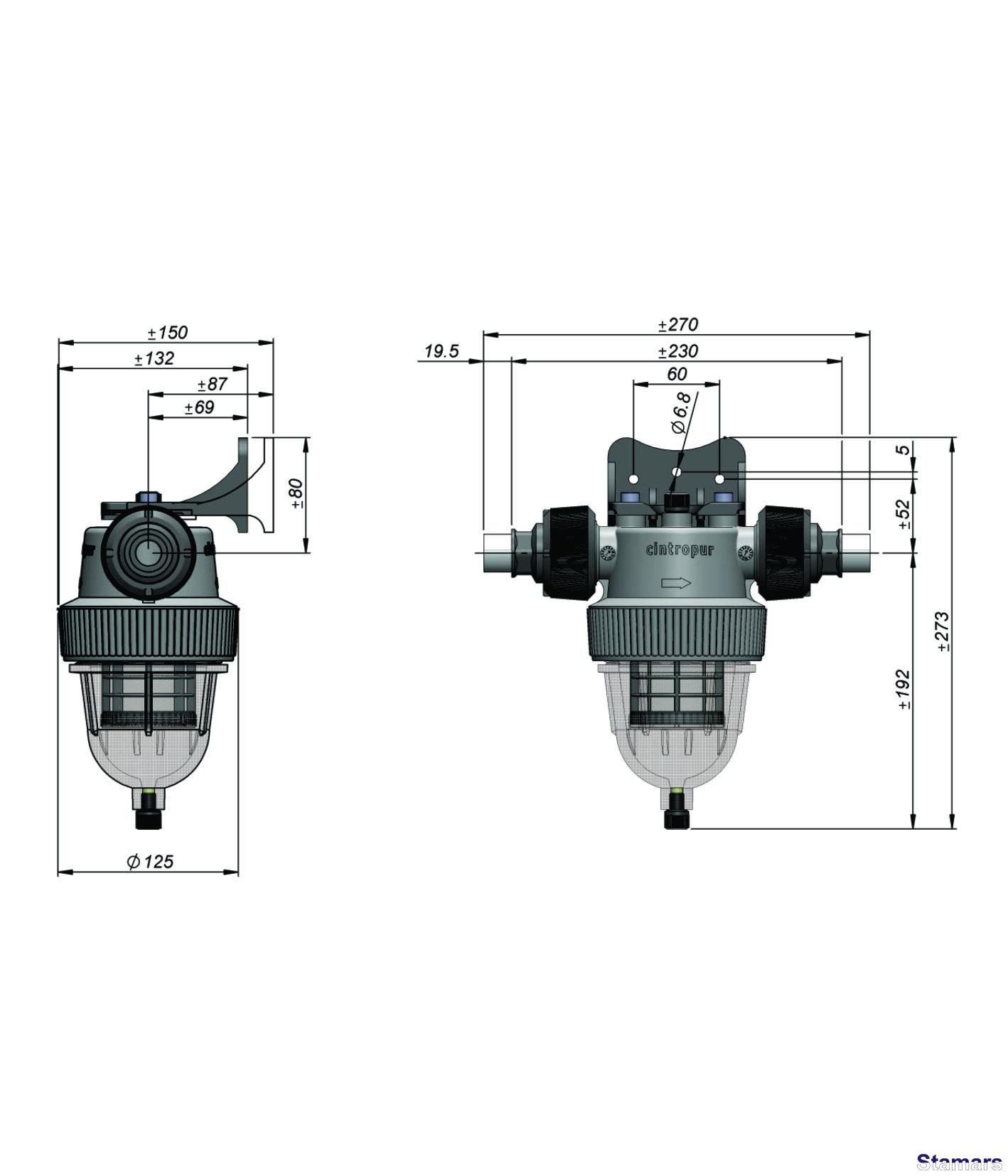 Visi CINTROPUR sērijas filtri ir aprīkoti ar centrifūgu, kas sagriež ienākošo ūdens plūsmu. Lielās piemaisījuma daļiņas, kas atrodas ūdens ienākošajā plūsmā, zem centrbēdzes spēka iedarbības nonāk uz kolbas korpusa un nosēžas tās apakšā, kuras var ērti novadīt kanalizācijā, atverot ventili filtra korpusa apakšā. Mazās daļiņas tiek filtrētas ar speciālu kārtridžu palīdzību.