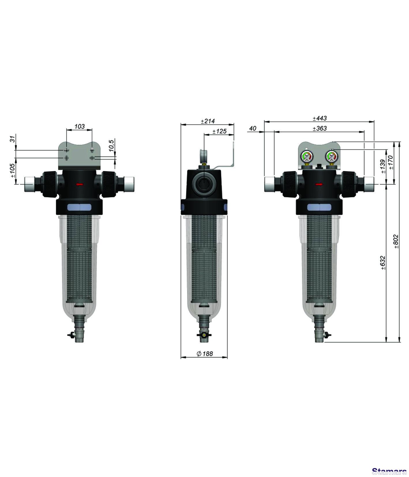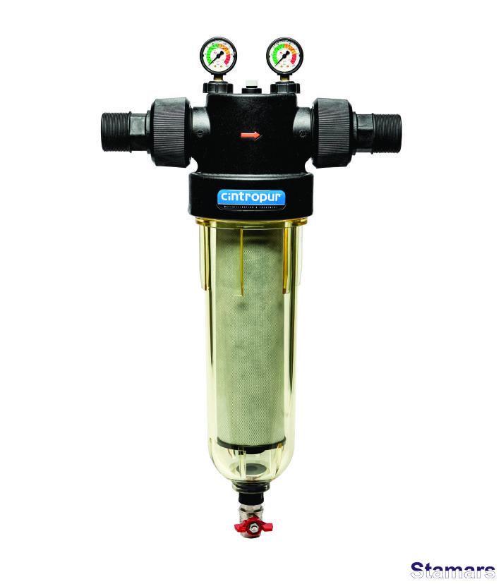 Visi CINTROPUR sērijas filtri ir aprīkoti ar centrifūgu, kas sagriež ienākošo ūdens plūsmu. Lielās piemaisījuma daļiņas, kas atrodas ūdens ienākošajā plūsmā, zem centrbēdzes spēka iedarbības nonāk uz kolbas korpusa un nosēžas tās apakšā, kuras var ērti novadīt kanalizācijā, atverot ventili filtra korpusa apakšā. Mazās daļiņas tiek filtrētas ar speciālu kārtridžu palīdzību.