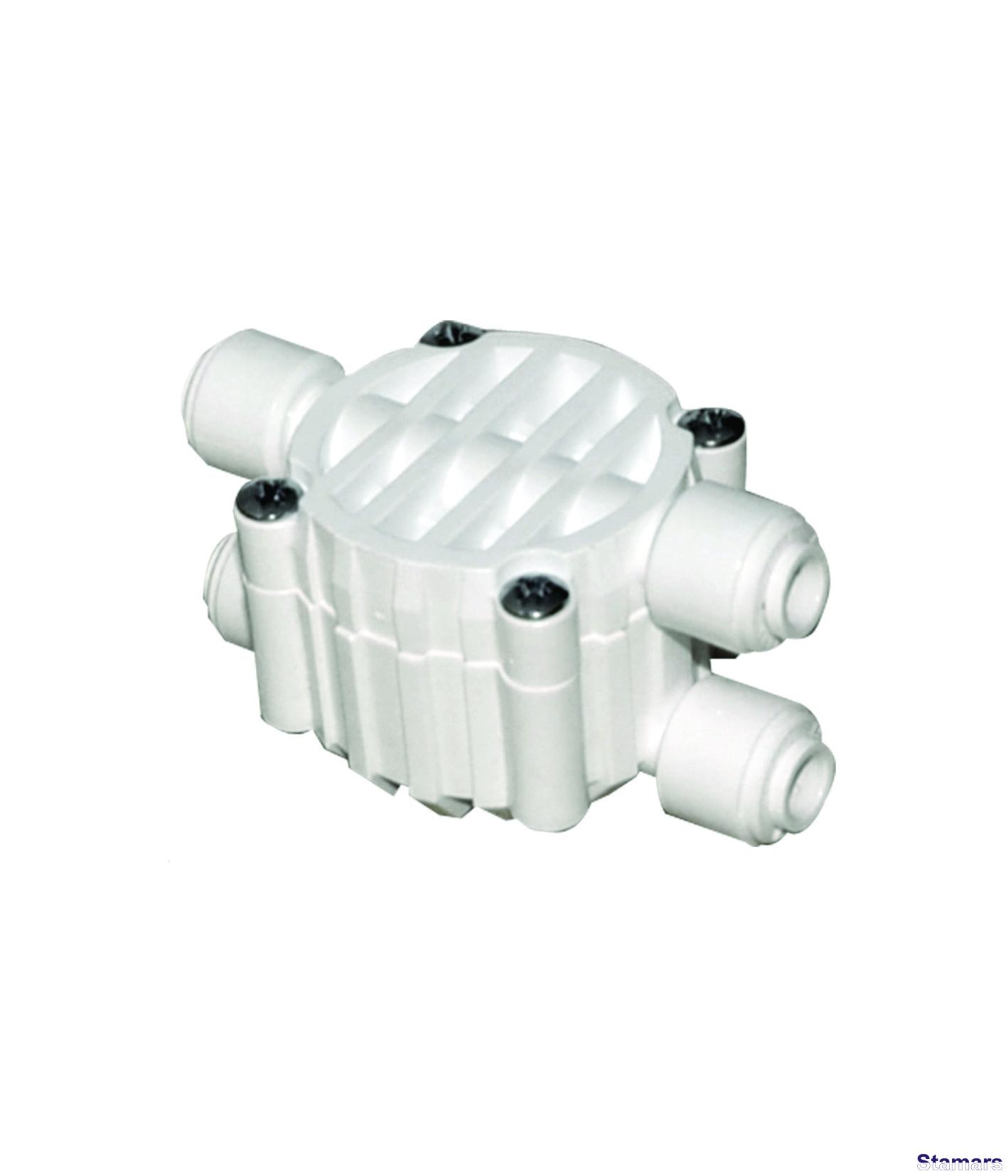Četrgaitas vārsts atgriezeniskas osmozes sistēmām kontrolē sistēmas darbību, atbild par ūdens plūsmas virzienu.