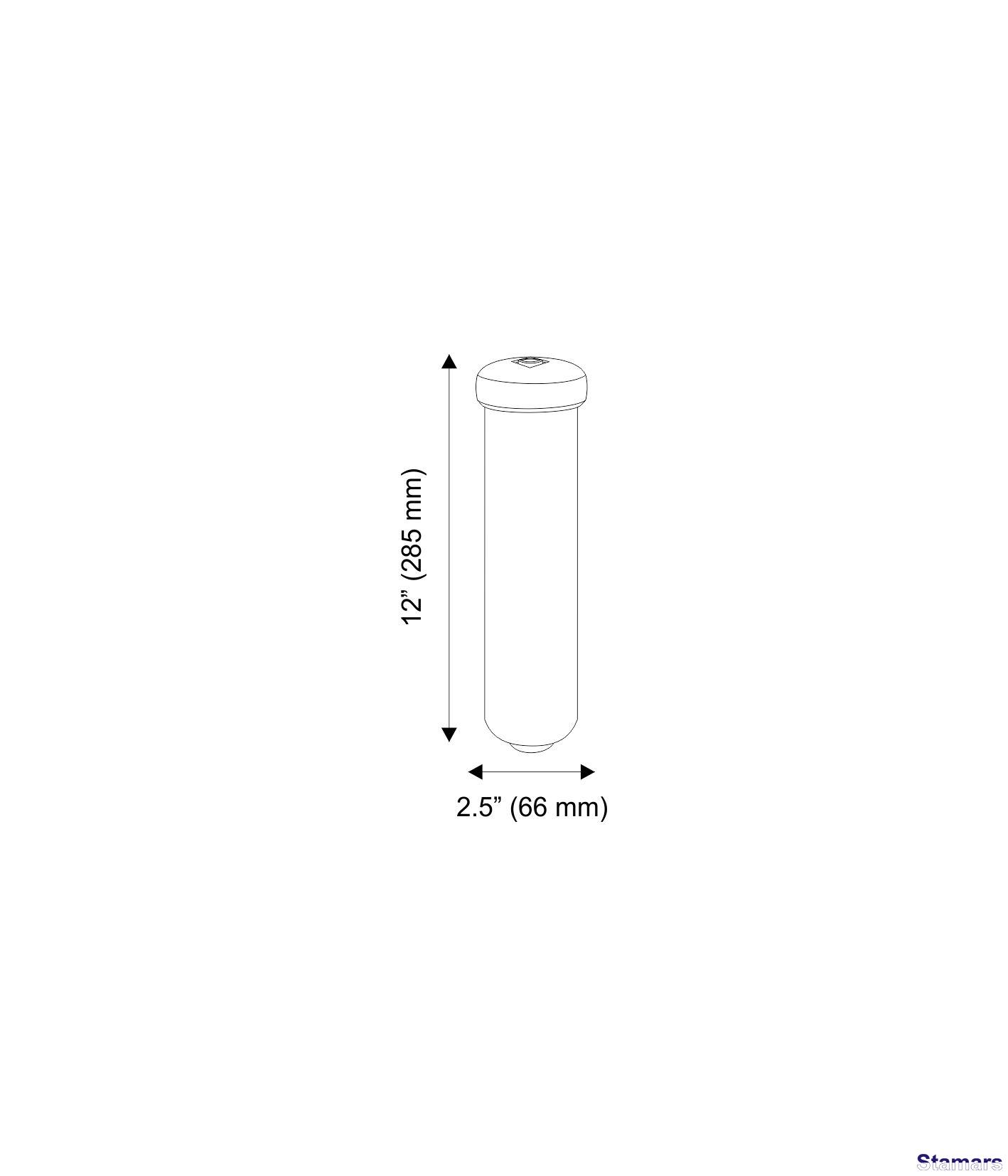 Izmērs (Augst. x Diam.) 12”x2.5”: 304 x 65 (mm)