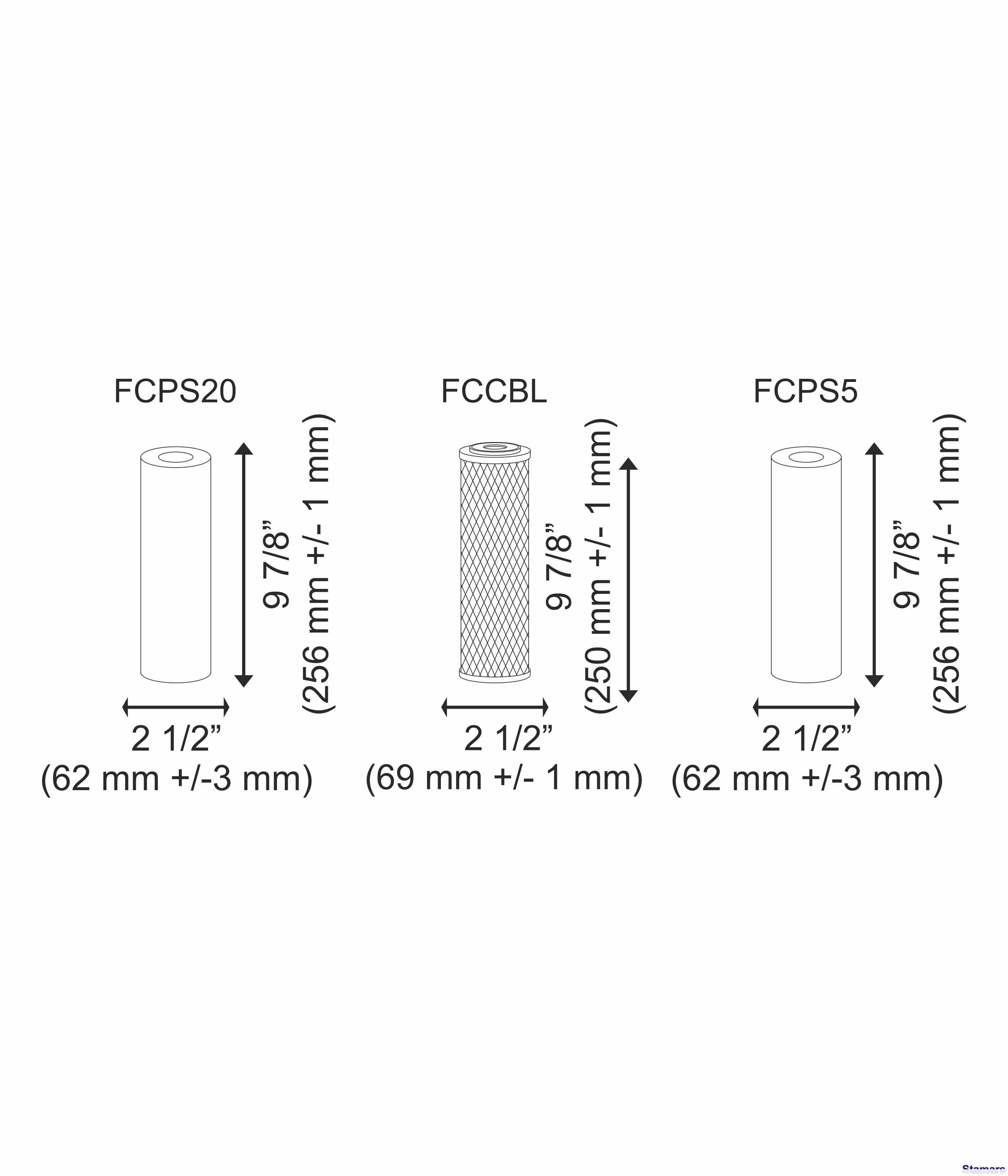 Izmērs (Augst. x Diam.) 10″: 256 (+/-1) x 62 (+/-3) (mm)