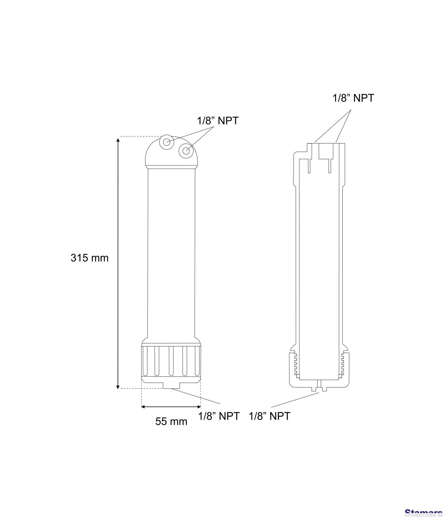 2.5" x 12” filtra korpuss ar baltu kolbu tiek aprīkots ar divām gumijas blīvēm galvā un kolbā. Var būt izmantots RO sistēmās un zem izlietnes filtrācijas sistēmās.