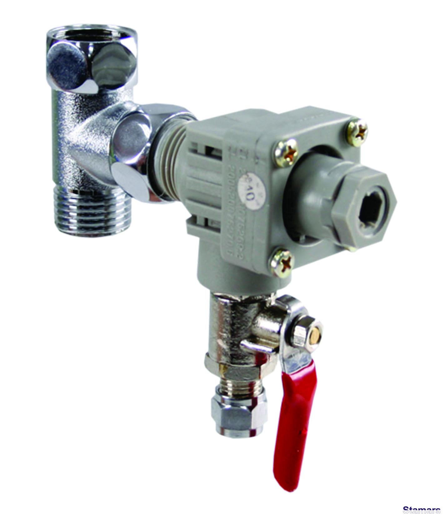 Spiediena regulātors ar adaptieri un misiņa lodveida ventīli. Pasargā ūdens attīrīšanas sistēmas no spiediena lēcieniem.