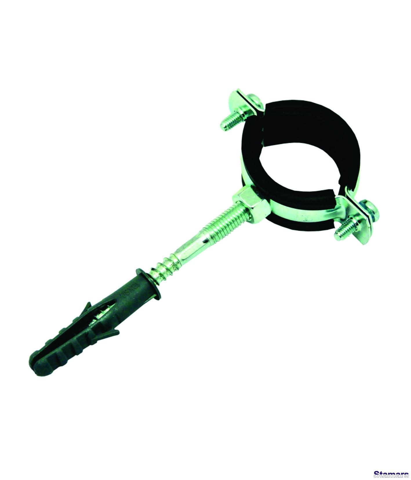 | Veids | Vienvietīga metāliska apskava ar gūmiju, ar skrūvi un dībeli |