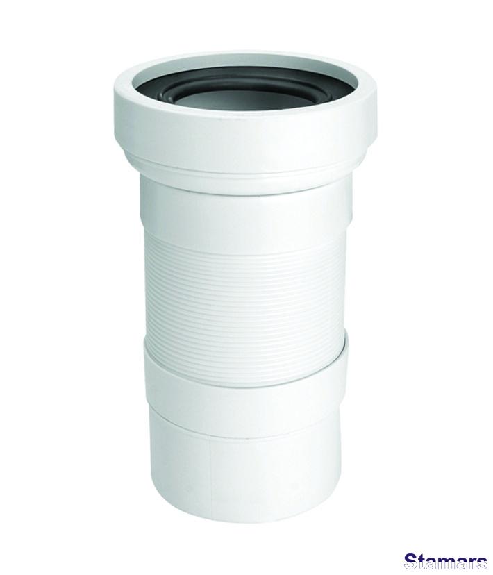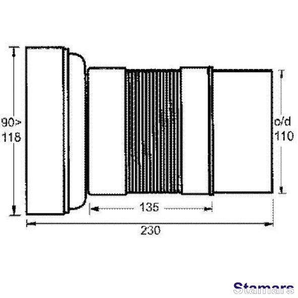 Elastīgs kanalizācijas pieslēgums ar garumu no 230 līdz 540 mm. Ieplūde 90-110mm ar lūpu blīvējumu, izeja 110mm.