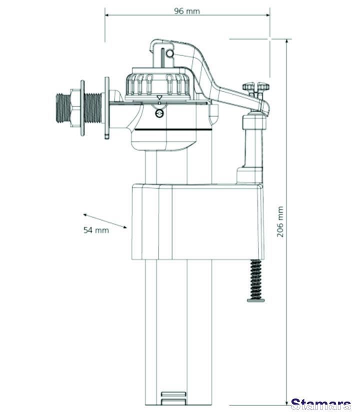 WC ieplūdes mehānisms, misiņa vītne no sāna