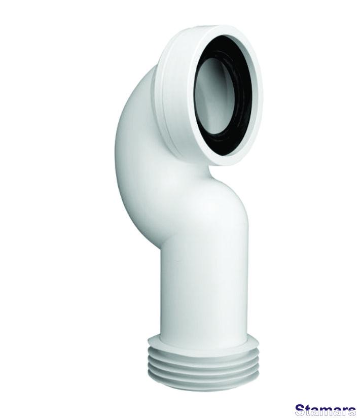 Kanalizācijas pieslēgums, garš 275mm, leņķis 90 grādi. Ieplūde 90-110mm ar lūpu blīvējumu, izeja 110mm ar atloka blīvējumu.